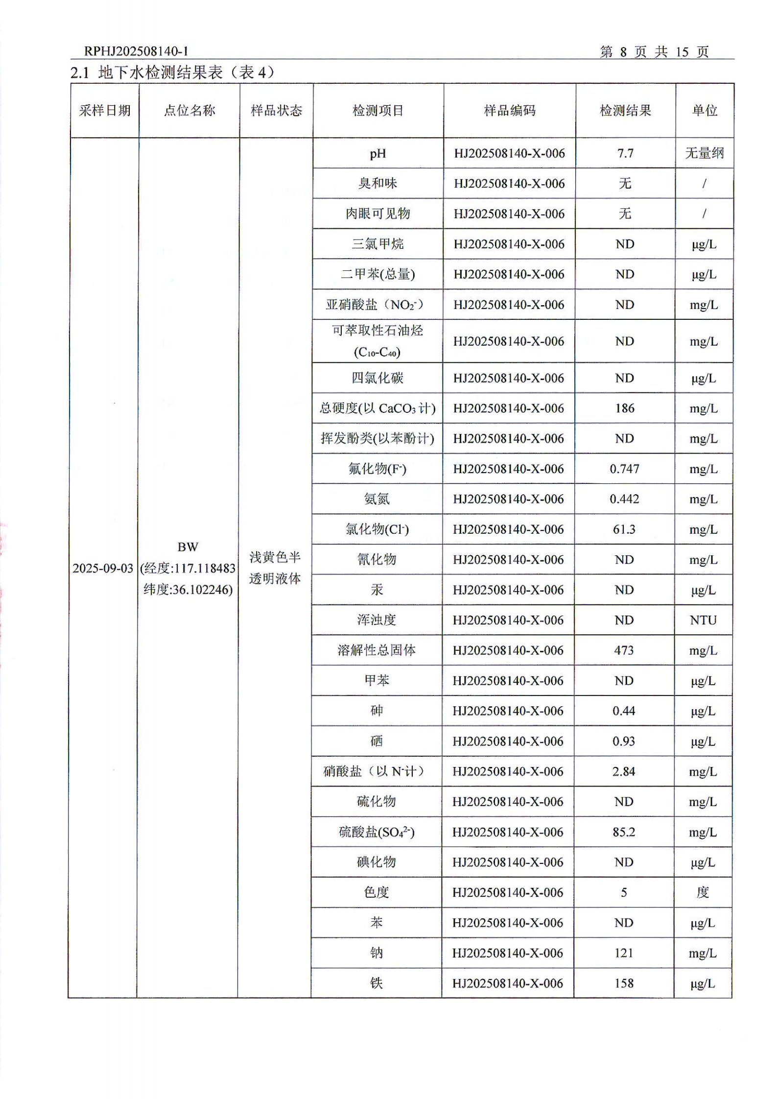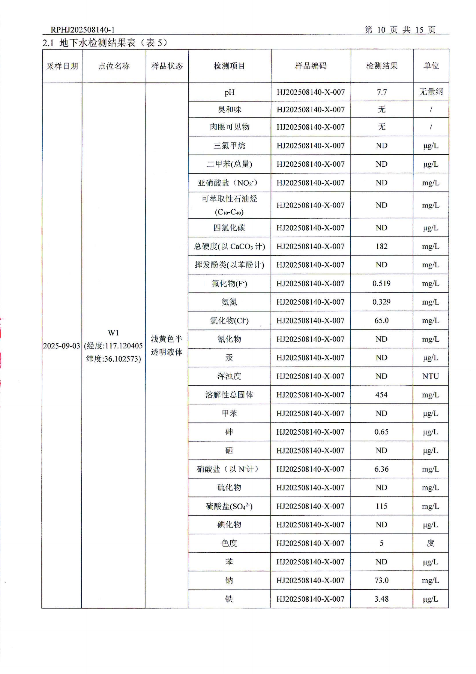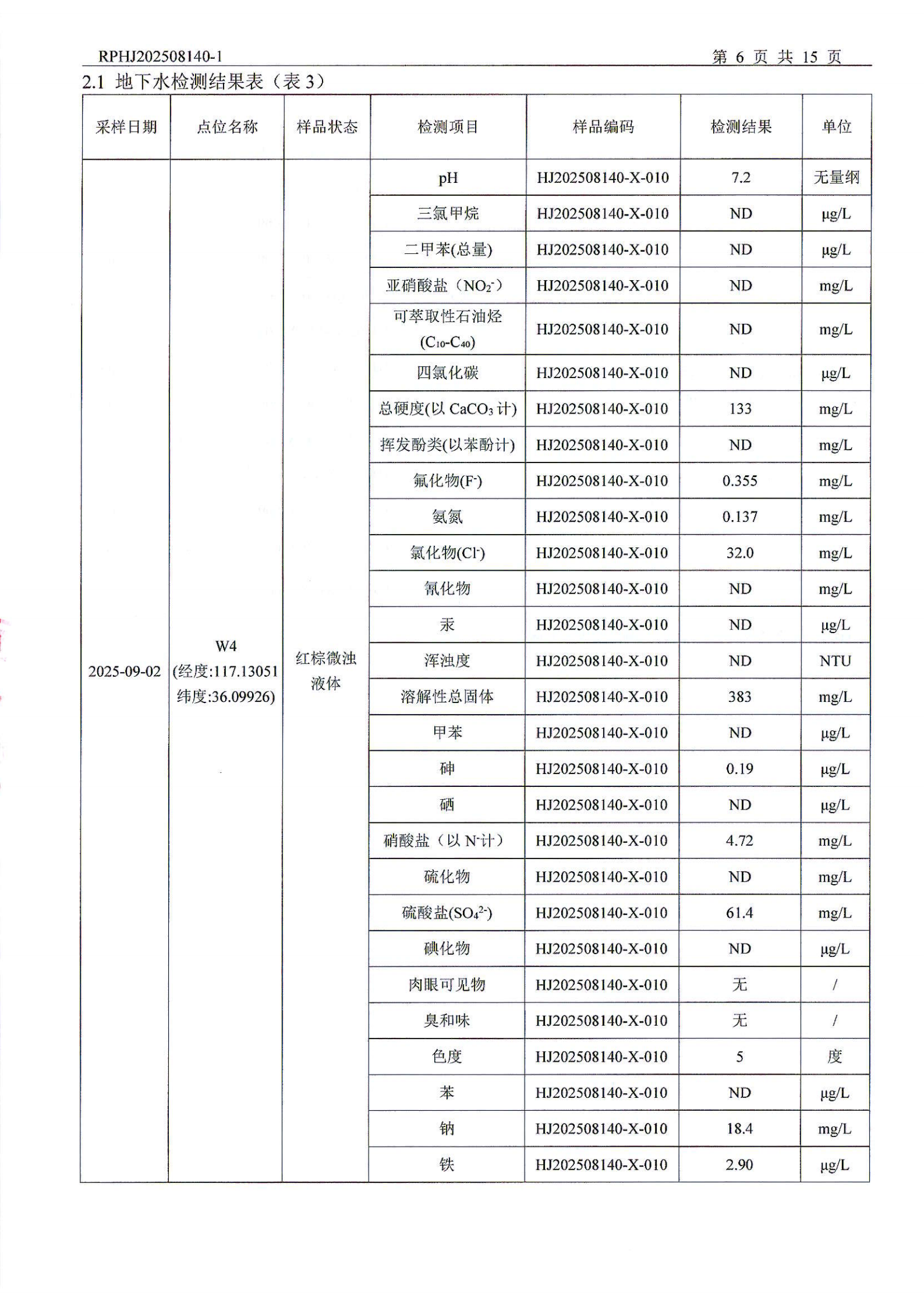 山东泰开电器机构有限公司地下水检测